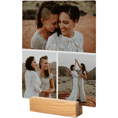 A tabletop metal print is a great personalized addition to coordinate with your modern aesthetic. Pick a black or natural Oak wood block to match your photos and space. This would also make a great gift for friends, parents or grandparents so you can remember favorite memories together.