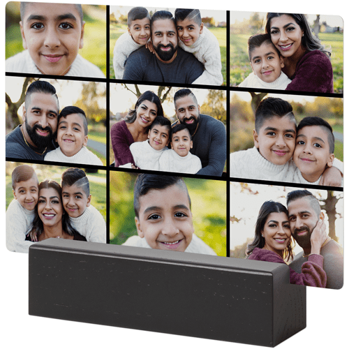A tabletop metal print is a great personalized addition to coordinate with your modern aesthetic. Pick a black or natural Oak wood block to match your photos and space. This would also make a great gift for friends, parents or grandparents so you can remember favorite memories together.