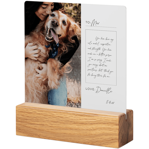 A tabletop metal print is a great personalized addition to coordinate with your modern aesthetic. Pick a black or natural Oak wood block to match your photos and space. This would also make a great gift for friends, parents or grandparents so you can remember favorite memories together.