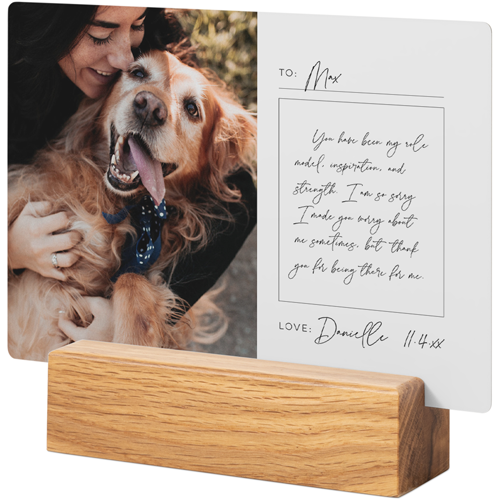 A tabletop metal print is a great personalized addition to coordinate with your modern aesthetic. Pick a black or natural Oak wood block to match your photos and space. This would also make a great gift for friends, parents or grandparents so you can remember favorite memories together.