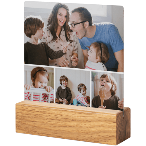 A tabletop metal print is a great personalized addition to coordinate with your modern aesthetic. Pick a black or natural Oak wood block to match your photos and space. This would also make a great gift for friends, parents or grandparents so you can remember favorite memories together.