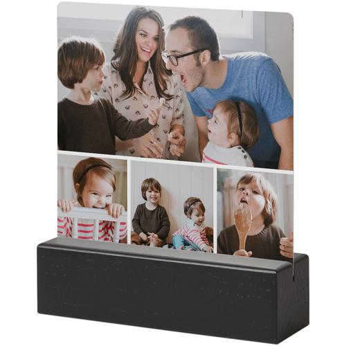 A tabletop metal print is a great personalized addition to coordinate with your modern aesthetic. Pick a black or natural Oak wood block to match your photos and space. This would also make a great gift for friends, parents or grandparents so you can remember favorite memories together.
