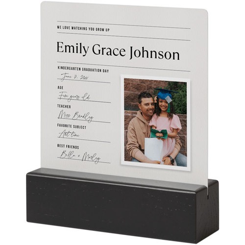A tabletop metal print is a great personalized addition to coordinate with your modern aesthetic. Pick a black or natural Oak wood block to match your photos and space. This would also make a great gift for friends, parents or grandparents so you can remember favorite memories together.