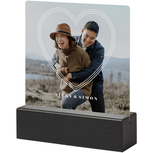 A tabletop metal print is a great personalized addition to coordinate with your modern aesthetic. Pick a black or natural Oak wood block to match your photos and space. This would also make a great gift for friends, parents or grandparents so you can remember favorite memories together.