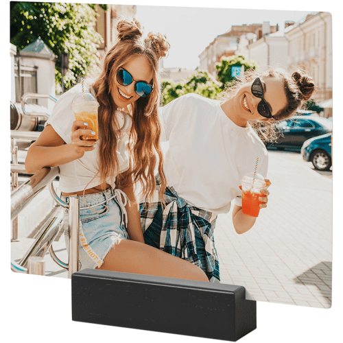 A tabletop metal print is a great personalized addition to coordinate with your modern aesthetic. Pick a black or natural Oak wood block to match your photos and space. This would also make a great gift for friends, parents or grandparents so you can remember favorite memories together.