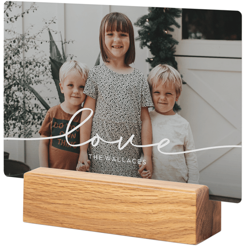 A tabletop metal print is a great personalized addition to coordinate with your modern aesthetic. Pick a black or natural Oak wood block to match your photos and space. This would also make a great gift for friends, parents or grandparents so you can remember favorite memories together.