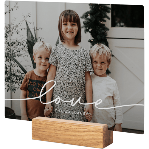 A tabletop metal print is a great personalized addition to coordinate with your modern aesthetic. Pick a black or natural Oak wood block to match your photos and space. This would also make a great gift for friends, parents or grandparents so you can remember favorite memories together.