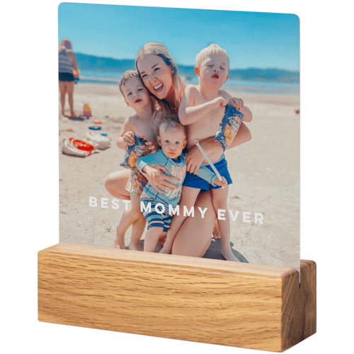 A tabletop metal print is a great personalized addition to coordinate with your modern aesthetic. Pick a black or natural Oak wood block to match your photos and space. This would also make a great gift for friends, parents or grandparents so you can remember favorite memories together.