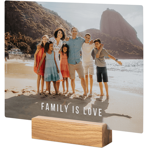A tabletop metal print is a great personalized addition to coordinate with your modern aesthetic. Pick a black or natural Oak wood block to match your photos and space. This would also make a great gift for friends, parents or grandparents so you can remember favorite memories together.