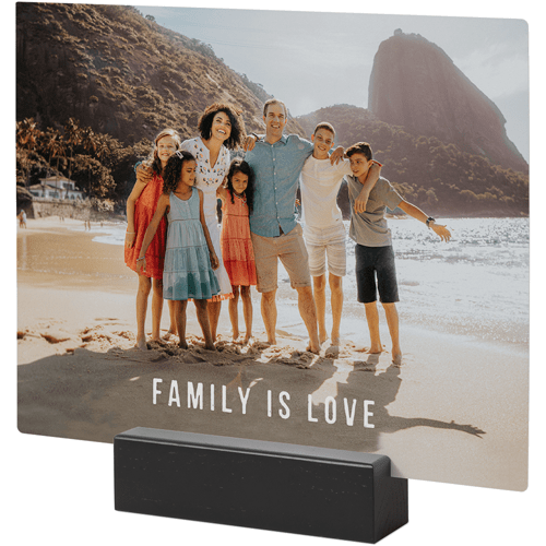 A tabletop metal print is a great personalized addition to coordinate with your modern aesthetic. Pick a black or natural Oak wood block to match your photos and space. This would also make a great gift for friends, parents or grandparents so you can remember favorite memories together.
