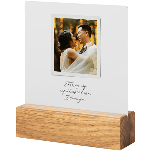 A tabletop metal print is a great personalized addition to coordinate with your modern aesthetic. Pick a black or natural Oak wood block to match your photos and space. This would also make a great gift for friends, parents or grandparents so you can remember favorite memories together.