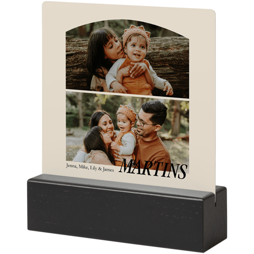 A tabletop metal print is a great personalized addition to coordinate with your modern aesthetic. Pick a black or natural Oak wood block to match your photos and space. This would also make a great gift for friends, parents or grandparents so you can remember favorite memories together.