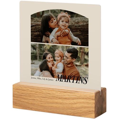 A tabletop metal print is a great personalized addition to coordinate with your modern aesthetic. Pick a black or natural Oak wood block to match your photos and space. This would also make a great gift for friends, parents or grandparents so you can remember favorite memories together.