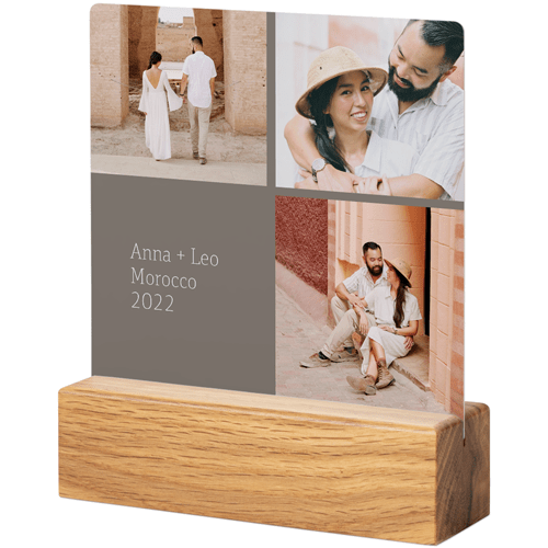 A tabletop metal print is a great personalized addition to coordinate with your modern aesthetic. Pick a black or natural Oak wood block to match your photos and space. This would also make a great gift for friends, parents or grandparents so you can remember favorite memories together.