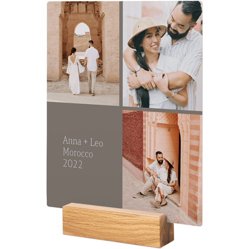 A tabletop metal print is a great personalized addition to coordinate with your modern aesthetic. Pick a black or natural Oak wood block to match your photos and space. This would also make a great gift for friends, parents or grandparents so you can remember favorite memories together.