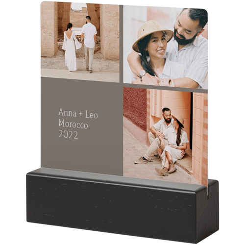 A tabletop metal print is a great personalized addition to coordinate with your modern aesthetic. Pick a black or natural Oak wood block to match your photos and space. This would also make a great gift for friends, parents or grandparents so you can remember favorite memories together.