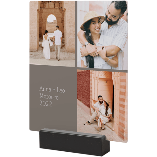 A tabletop metal print is a great personalized addition to coordinate with your modern aesthetic. Pick a black or natural Oak wood block to match your photos and space. This would also make a great gift for friends, parents or grandparents so you can remember favorite memories together.