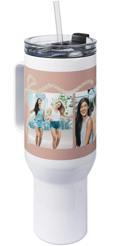 The 40 oz tumbler with handle provides a unique, portable way to stylishly display favorite photos, meaningful quotes, or a gift for any occasion with an easy-grip handle and a tapered base that fits most cup holders. Our tumbler is generously sized featuring double-wall insulation, a BPA-free plastic lid and straw designed to resist splashes with a seal that holds the reusable straw in place, a drink opening, and a full-cover top. Fewer refills and less hassle - enjoy staying hydrated all day long!