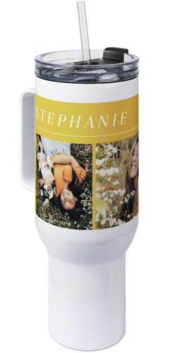 The 40 oz tumbler with handle provides a unique, portable way to stylishly display favorite photos, meaningful quotes, or a gift for any occasion with an easy-grip handle and a tapered base that fits most cup holders. Our tumbler is generously sized featuring double-wall insulation, a BPA-free plastic lid and straw designed to resist splashes with a seal that holds the reusable straw in place, a drink opening, and a full-cover top. Fewer refills and less hassle - enjoy staying hydrated all day long!
