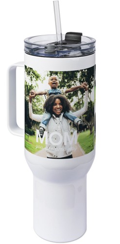 The 40 oz tumbler with handle provides a unique, portable way to stylishly display favorite photos, meaningful quotes, or a gift for any occasion with an easy-grip handle and a tapered base that fits most cup holders. Our tumbler is generously sized featuring double-wall insulation, a BPA-free plastic lid and straw designed to resist splashes with a seal that holds the reusable straw in place, a drink opening, and a full-cover top. Fewer refills and less hassle - enjoy staying hydrated all day long!