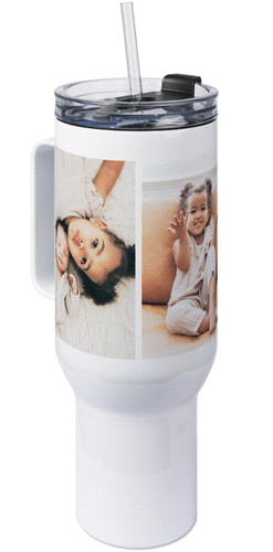 The 40 oz tumbler with handle provides a unique, portable way to stylishly display favorite photos, meaningful quotes, or a gift for any occasion with an easy-grip handle and a tapered base that fits most cup holders. Our tumbler is generously sized featuring double-wall insulation, a BPA-free plastic lid and straw designed to resist splashes with a seal that holds the reusable straw in place, a drink opening, and a full-cover top. Fewer refills and less hassle - enjoy staying hydrated all day long!