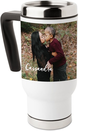 Every morning starts off great with this custom travel mug for your beverages on the go. Tapered base that fits most cup holders.