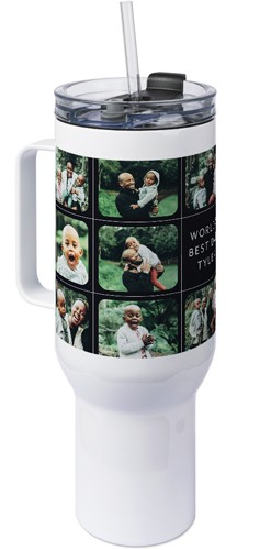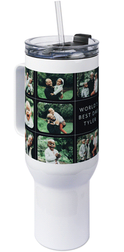 The 40 oz tumbler with handle provides a unique, portable way to stylishly display favorite photos, meaningful quotes, or a gift for any occasion with an easy-grip handle and a tapered base that fits most cup holders. Our tumbler is generously sized featuring double-wall insulation, a BPA-free plastic lid and straw designed to resist splashes with a seal that holds the reusable straw in place, a drink opening, and a full-cover top. Fewer refills and less hassle - enjoy staying hydrated all day long!