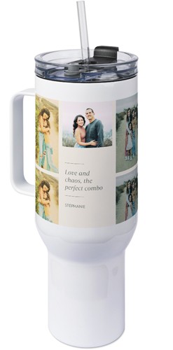 The 40 oz tumbler with handle provides a unique, portable way to stylishly display favorite photos, meaningful quotes, or a gift for any occasion with an easy-grip handle and a tapered base that fits most cup holders. Our tumbler is generously sized featuring double-wall insulation, a BPA-free plastic lid and straw designed to resist splashes with a seal that holds the reusable straw in place, a drink opening, and a full-cover top. Fewer refills and less hassle - enjoy staying hydrated all day long!