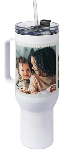 The 40 oz tumbler with handle provides a unique, portable way to stylishly display favorite photos, meaningful quotes, or a gift for any occasion with an easy-grip handle and a tapered base that fits most cup holders. Our tumbler is generously sized featuring double-wall insulation, a BPA-free plastic lid and straw designed to resist splashes with a seal that holds the reusable straw in place, a drink opening, and a full-cover top. Fewer refills and less hassle - enjoy staying hydrated all day long!