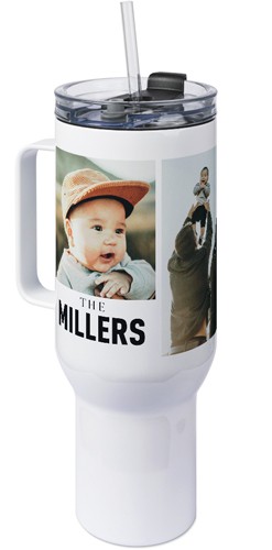 The 40 oz tumbler with handle provides a unique, portable way to stylishly display favorite photos, meaningful quotes, or a gift for any occasion with an easy-grip handle and a tapered base that fits most cup holders. Our tumbler is generously sized featuring double-wall insulation, a BPA-free plastic lid and straw designed to resist splashes with a seal that holds the reusable straw in place, a drink opening, and a full-cover top. Fewer refills and less hassle - enjoy staying hydrated all day long!