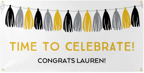 Use this vinyl banner to share news with your neighbors, from celebrating a graduate, a wedding or sports team to spreading the news about an event. Personalize on one side with your choice of horizontal or vertical designs, and hang using the four gold grommets at the corners. No hanging accessories included.