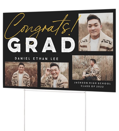 Celebrate what you love with this personalized corrugated yard sign, which is great for honoring your grad, announcements, weddings, parties and more. Double-sided printing makes your sign easy to spot from either direction. Set up quickly and easily with an aluminum H" step stake that's easy to insert into the ground and securely holds the sign in place."
