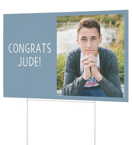 Celebrate what you love with this personalized corrugated yard sign, which is great for honoring your grad, announcements, weddings, parties and more. Double-sided printing makes your sign easy to spot from either direction. Set up quickly and easily with an aluminum H" step stake that's easy to insert into the ground and securely holds the sign in place."