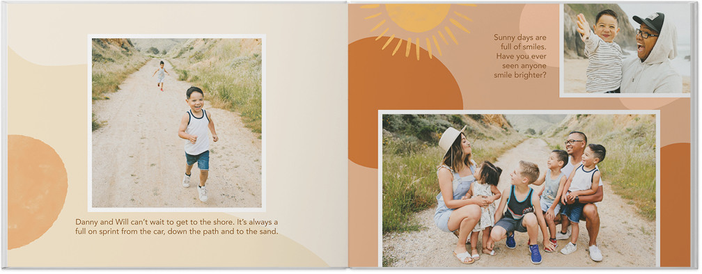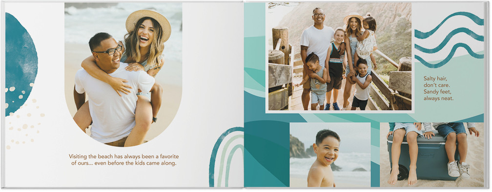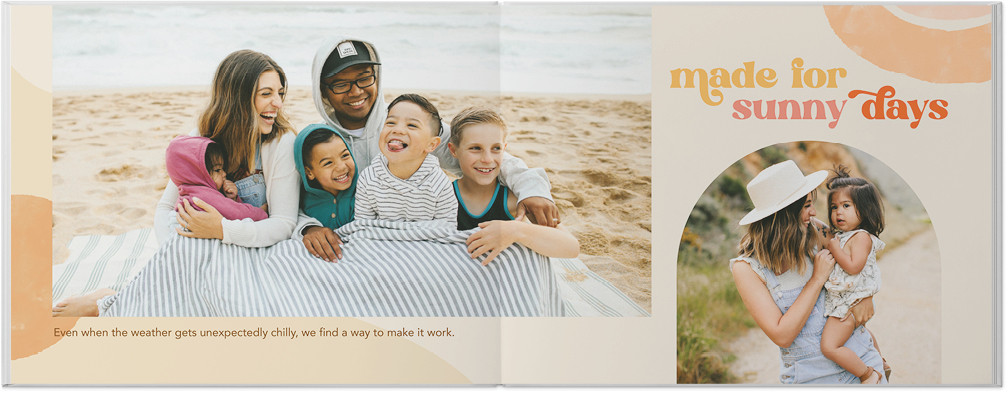 Capture those chill summer vibes with a photo book full of bohemian flair. We picked a palette of warm oranges and golds with a burst of beachy teal to make your photos pop. Sprinkle in some chic boho embellishments to highlight those beach vacay pics or fam road trip fun and pick elements that channel your summer state of mind. You'll find plenty of fun sayings, colorful backgrounds and more to make your photo book one-of-a-kind, too.