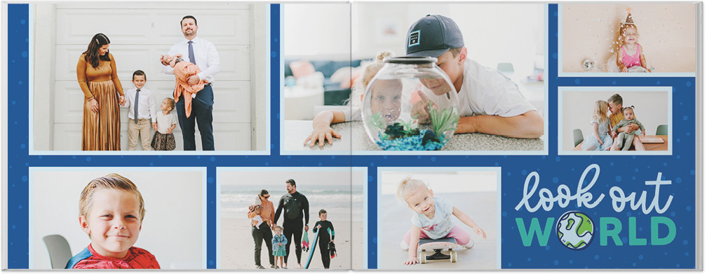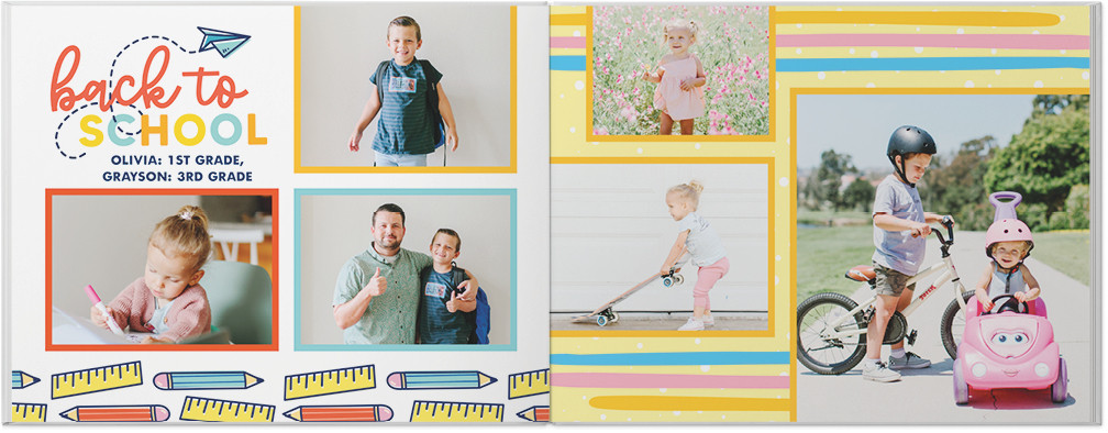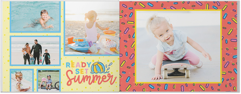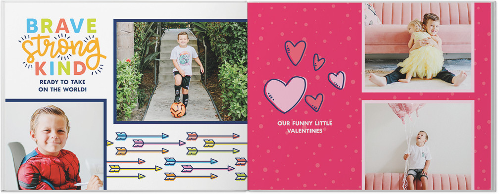 Capture your child's year of adventures with this bright and colorful year in review photo book. Showcase holidays, seasons, birthdays, and everyday special moments with a wide variety of playful embellishments and layouts. Endless possibilities - all layouts, embellishments, text and elements are fully customizable. This photo book is from our Designer Collection created by Sarah Hawkins Designs.