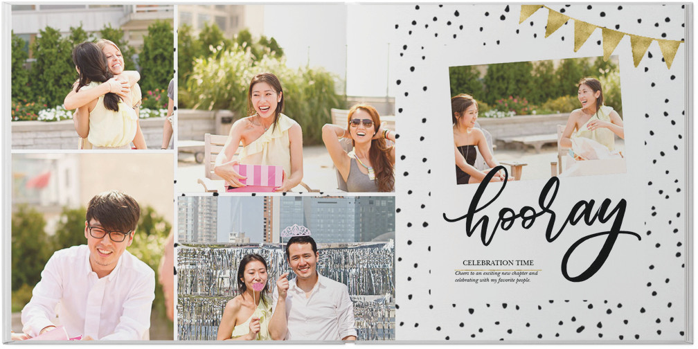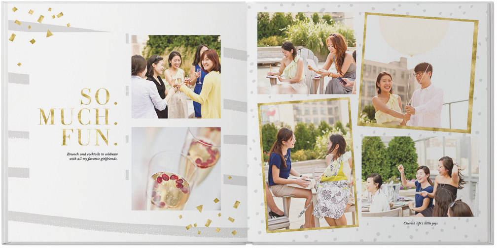 Making a photo book has never been so fun! A festive photo book style designed to capture and highlight memories from any celebration! Hand drawn sentiments, high contrast backgrounds and faux foil accents work together to highlight your memorable photography. Endless possibilities - all layouts, embellishments, text and elements are fully customizable. This photo book is from our Designer Collection created by Float Paperie.