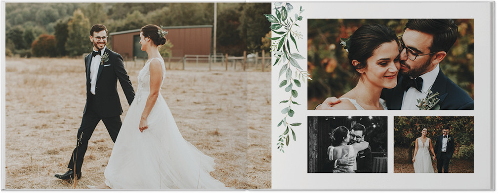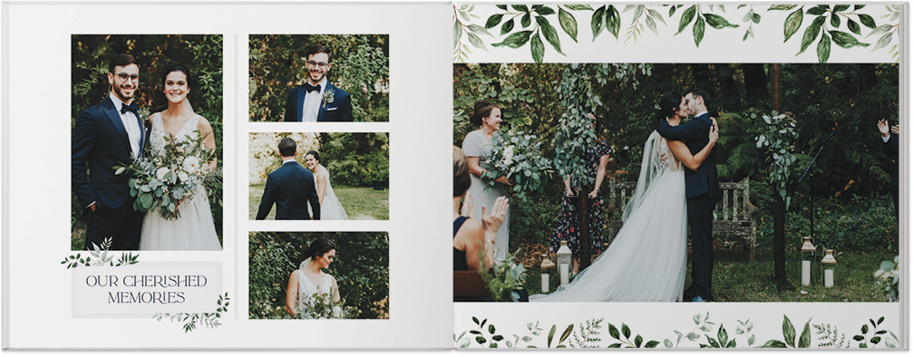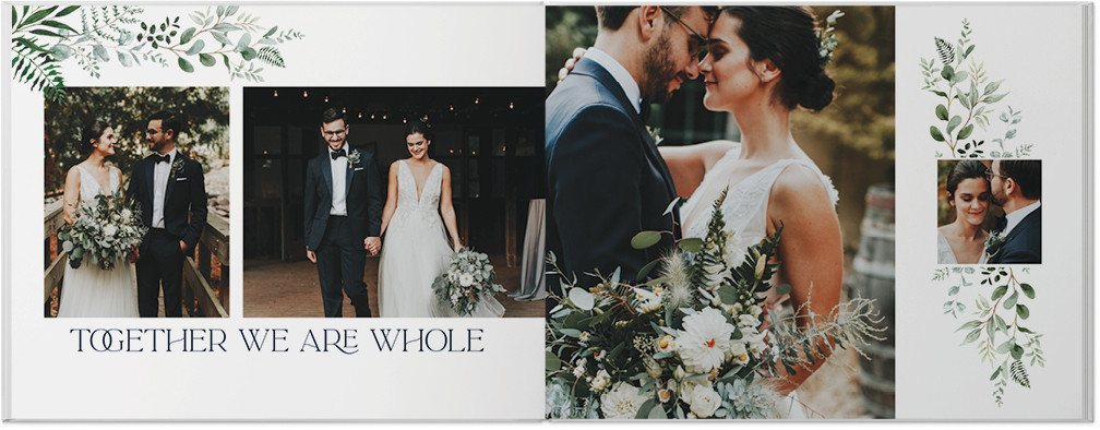 Celebrate your special day with this beautifully elegant wedding photo book style. Clean backgrounds mix with lush, hand-painted greenery and modern type lockups to create the perfect keepsake that's as timeless as your love. Endless possibilities - all layouts, embellishments, text and elements are fully customizable. This photo book is from our Designer Collection created by Kim Thoa.