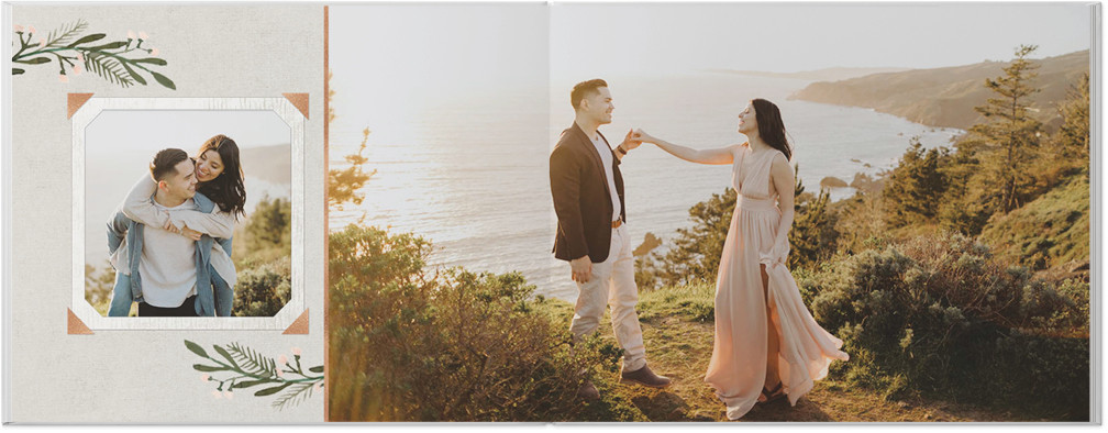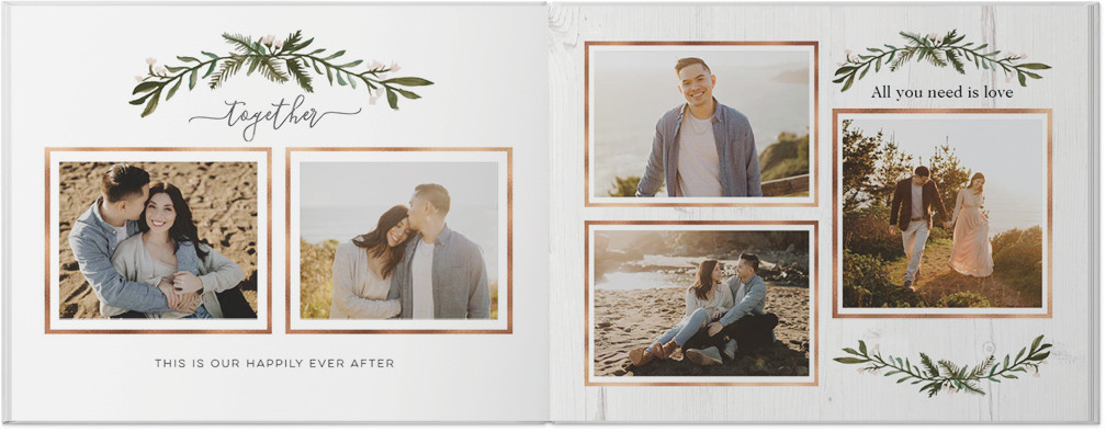 Celebrate love and life with this rustic and unique photo book. Whitewashed wood and subtle, textured backgrounds create the backdrop for your fondest memories, while beautiful script sentiments and unique framing add the perfect touch to your love story. This style includes hand-painted florals and faux foil embellishments as unique and special as life with your loved one. Endless possibilities - all layouts, embellishments, text and elements are fully customizable. This photo book is from our Designer Collection created by With Merriment.