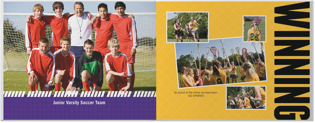 Celebrate your all-star's accomplishments this year or make as a gift for a favorite coach. Tons of embellishment options let you pick one sport or many. Customize with team colors, patterns and fun sayings. Endless possibilities - all layouts, embellishments, text and elements are fully customizable. This photo book is from our Designer Collection created by Lure Design.