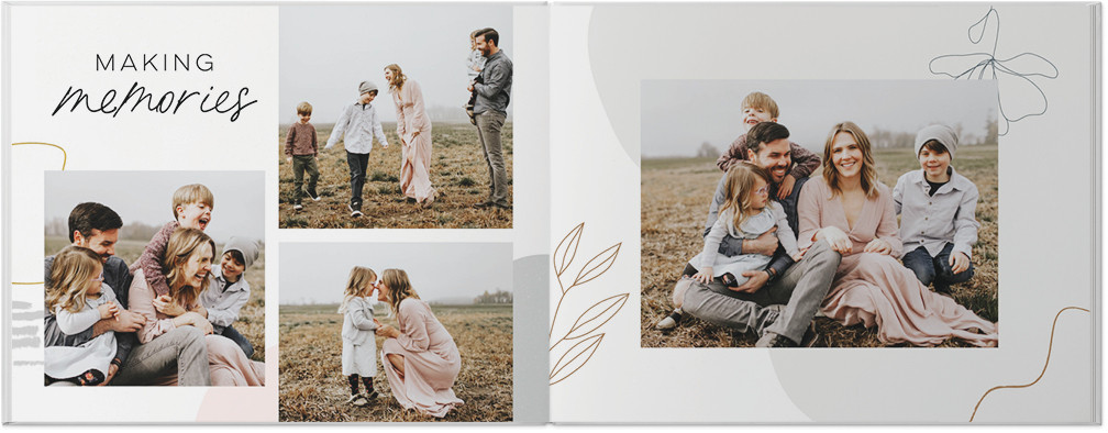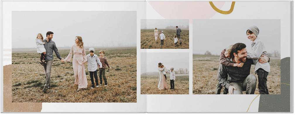 Capture all your favorite memories--both big and small--with this beautiful photo book style. Soft, muted tones and abstract shapes pair with inspirational sentiments and delicate hints of faux gold foil. Endless possibilities - all layouts, embellishments, text and elements are fully customizable.