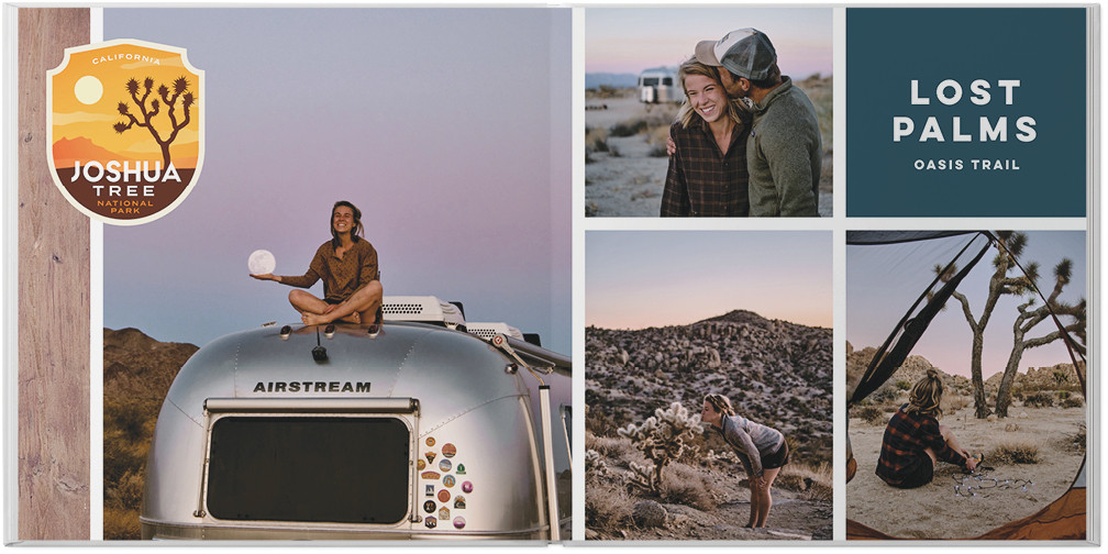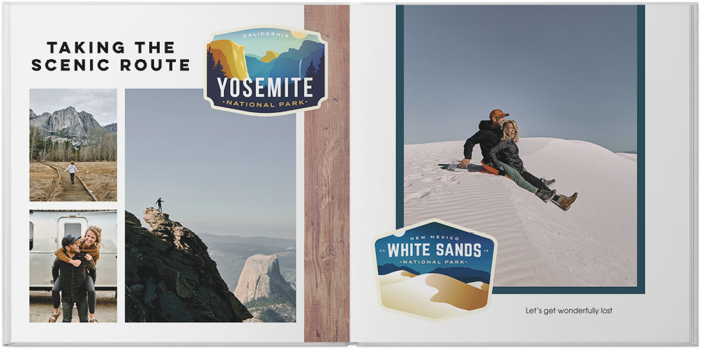 Relive all your national park adventures with this modern travel photo book. Make your photos come to life against clean background with wood accents, then add in badges with iconic imagery from the most popular national parks to highlight your trip. Endless possibilities - all layouts, embellishments, text and elements are fully customizable. This photo book is from our Designer Collection created by Eiman Design Co.