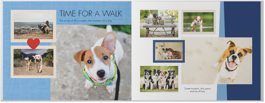 Bow wow, Meow! Whether you're a cat lover or dog person (or both), this custom photo book is perfect for celebrating your favorite moments and proving that best friends really do have fur. Highlight your photos through bold backgrounds with sweet sentiments that allow paw prints to crawl right off the page. Endless possibilities - all layouts, embellishments, text and elements are fully customizable.