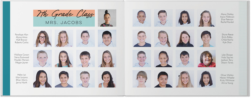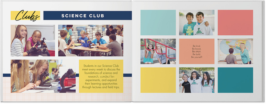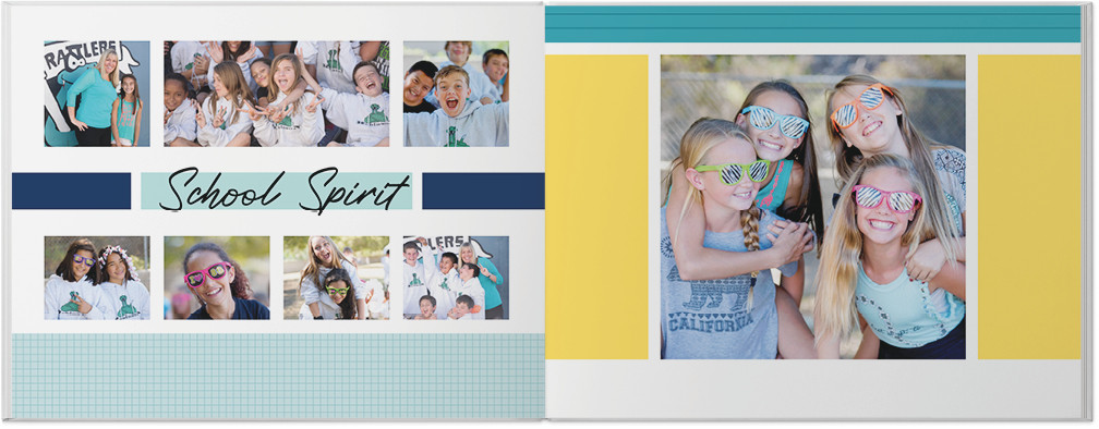 Create a yearbook to capture the most memorable moments of the school year. Classic color blocking and gridded pages make this style perfect for elementary, middle, or high school. Highlight the unique memories of the year with special pages for sports, clubs, and of course student, classroom and faculty photos. Endless possibilities - all layouts, embellishments, text and elements are fully customizable.