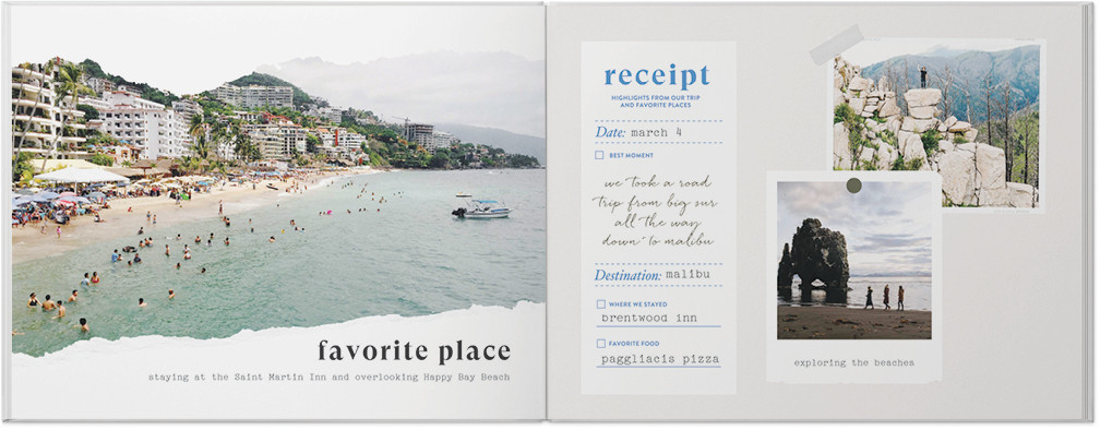 Ideal for giving your standard travel journal scrapbook a refined upgrade, this highly customizable, yet polished design uses neutral, subtle colors and textures in lightly marbled, textured and patterned greys, beiges and creams to make your travel photography the star of the show. Bring your road trip, family vacation and other favorite travel memories to life, with a variety of classic photography frame styles and souvenir keepsake treatments, travel journal ideas, collected yet curated memory book layouts, versatile text options, and a variety of illustrated graphics and metallic embellishment options. Drawing inspiration from classic map, postcard, tickets, stickers scrapbook, Polaroid, photobooth, film strip, and sticker motifs, capture your sense of wanderlust in this high-quality travel journal inspired photo book, designed for those who understand life's most cherished adventures are more about the journey than the destination.
