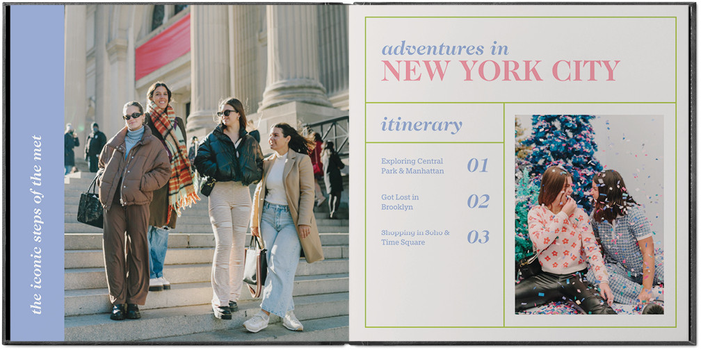 This colorful, playful photo book design is ideal for all your unforgettable travel memories and everyday adventures. Bring your stories to life with bright embellishments, fun editable expressions and vibrant backgrounds and patterns. Whether you're documenting an amazing weekend with friends or an epic vacation with family, this photo book design is sure to become one of your favorites.