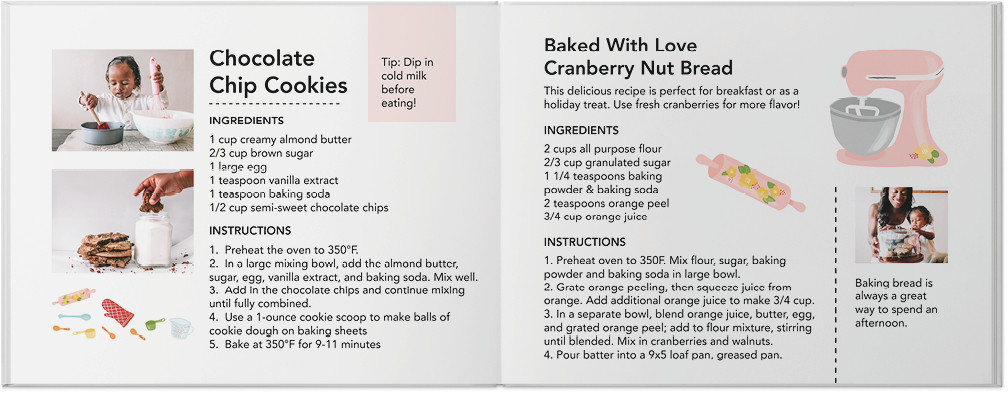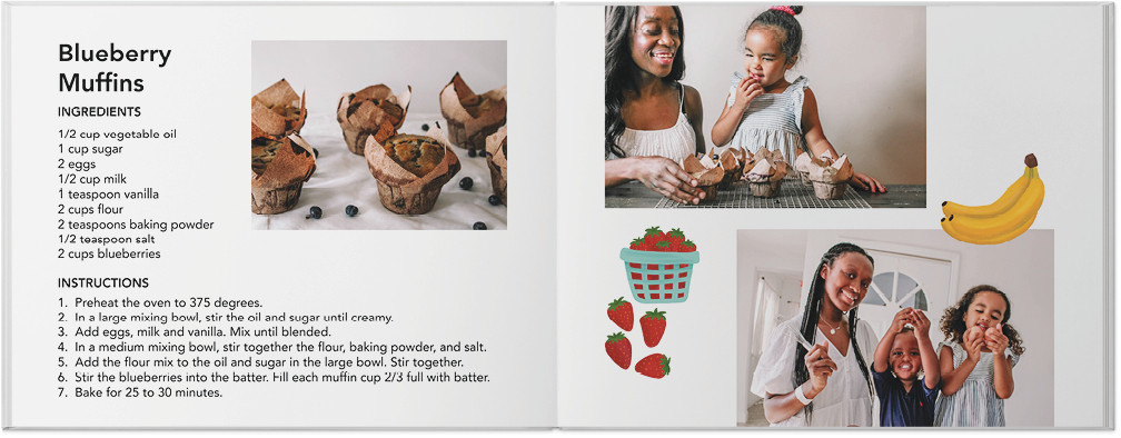 Get cooking with this fun recipe style! Whimsical hand-painted embellishments and type will make all your favorite recipes - from savory appetizers to delicious desserts - come to life. Perfect as a keepsake in your own kitchen or for gifting to friends and family. Endless possibilities - all layouts, embellishments, text and elements are fully customizable.