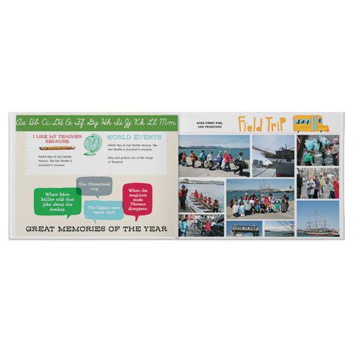 Make a yearbook of your child's elementary school years. Whether for a single student, class or an entire school, this premium photo book makes it easy. Find specially designed page templates for school activities, subjects, and of course student, classroom and faculty photos. There's even a page for classmates to share autographs. Whimsical school embellishments let you fill in the blanks for favorite subjects, memories and fun facts about that year. Designed by The Comstocks.