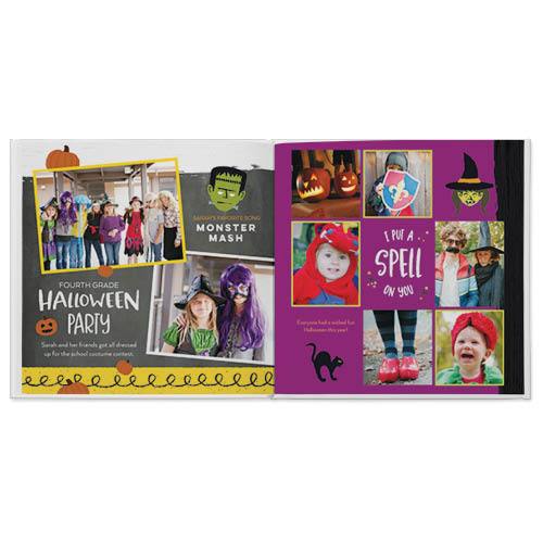 Capture all the fun and fright of Halloween with this spooktacular photo book. The pages light up with Jack-O-Lanterns, dancing skeletons and your favorite costume creations. Just add your best tricks and treats to save the fun forever. This premium style was designed by Yours Truly.