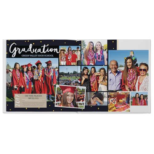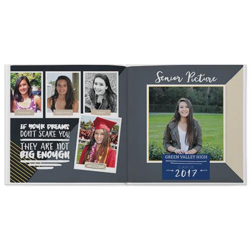 Four years flew by so fast. From those first-day freshman butterflies to laid-back sophomore days, to junior and senior years you hoped would never end, never forget the memories shared. As you embark on your next adventure, make a photo book to bring the best of high school with you. Backgrounds in classic black and white and cool kraft paper paired with hand-drawn shapes and dazzling gold embellishments give your photos an added burst of fun in this premium style designed  by Yours Truly.