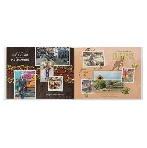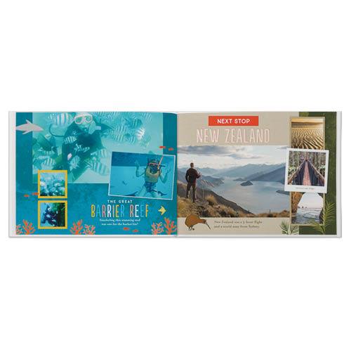 World-class cities. Spectacular outdoor adventures. Cool animals. Enjoy and share all the great memories from your trip Down Under with this bright, artful photo book. With varied layouts and fun backgrounds and borders, the pages capture the energy and spirit of Australia and New Zealand. This premium style was designed by Potts Design.